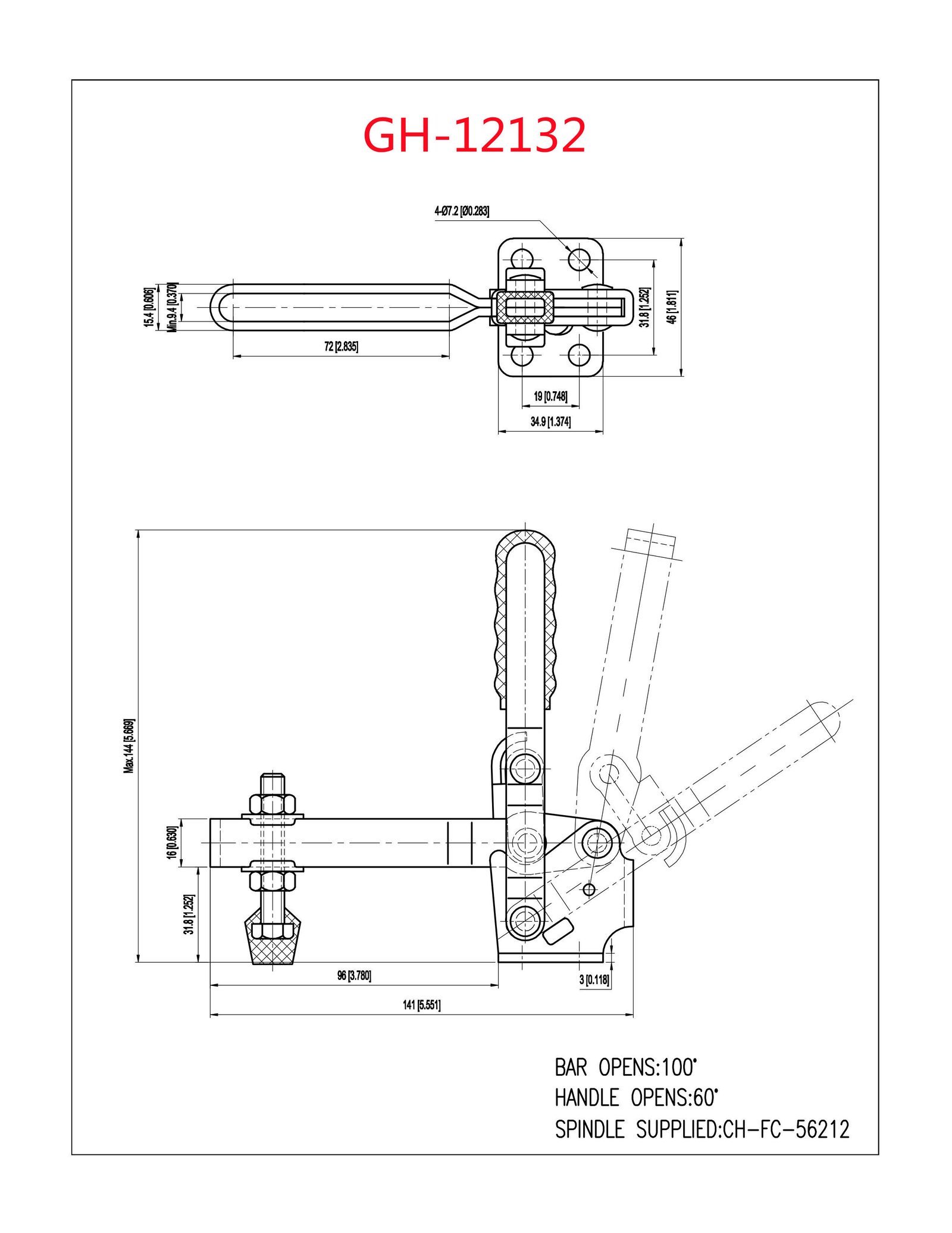 GH-12132 Antislip Red Horizontal Quick Release Clamp Adjustable Steel Carbon Metal Hand Tool Toggle Clamp Inch Measurement